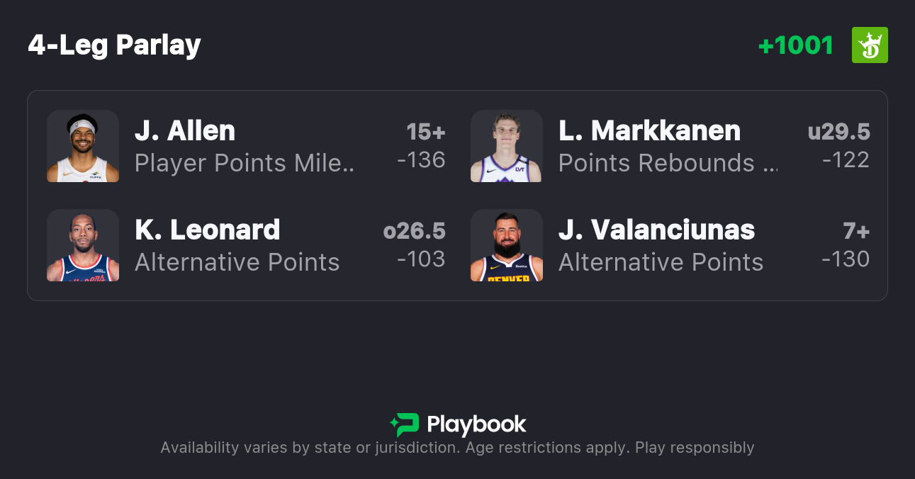 Our NBA player props for Friday are targeting Kawhi Leonard, Lauri Markkanen, Jarrett Allen, and more.