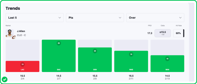 Jarrett Allen is averaging 20.5 points per game since James Harden got to town.