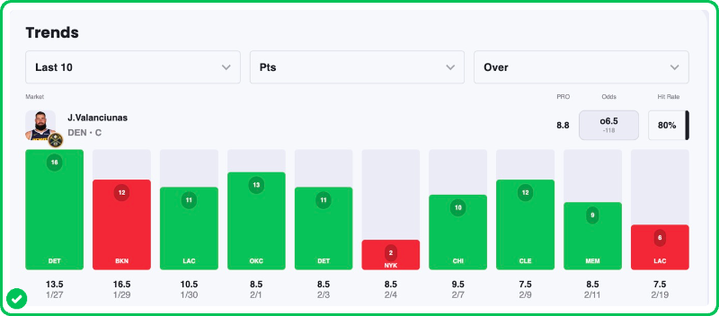 Granted, a handful of those games were played with Nikola Jokic sidelined — but with the Nuggets playing on the second half of a back-t0-back tonight, and Jokic still gradually working his way back to full strength, this should be a solid spot for Valanciunas to get back over this number.
