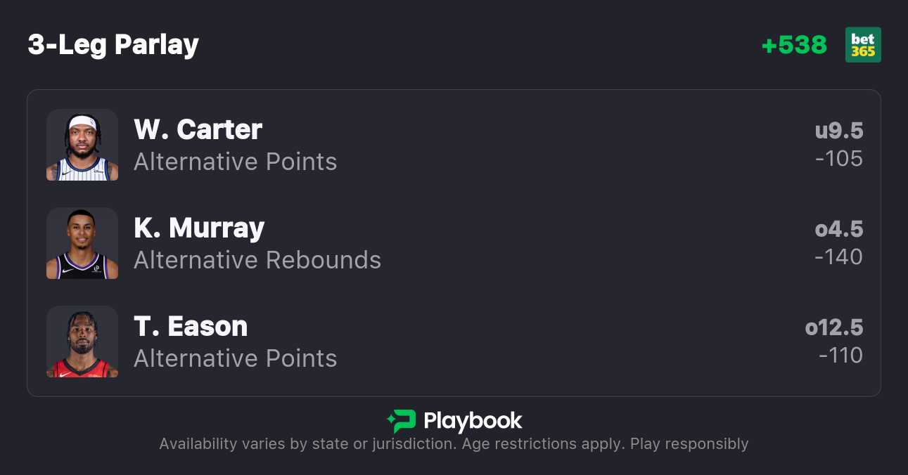 Our NBA player props for Saturday are targeting Wendell Carter, Keegan Murray, and more.