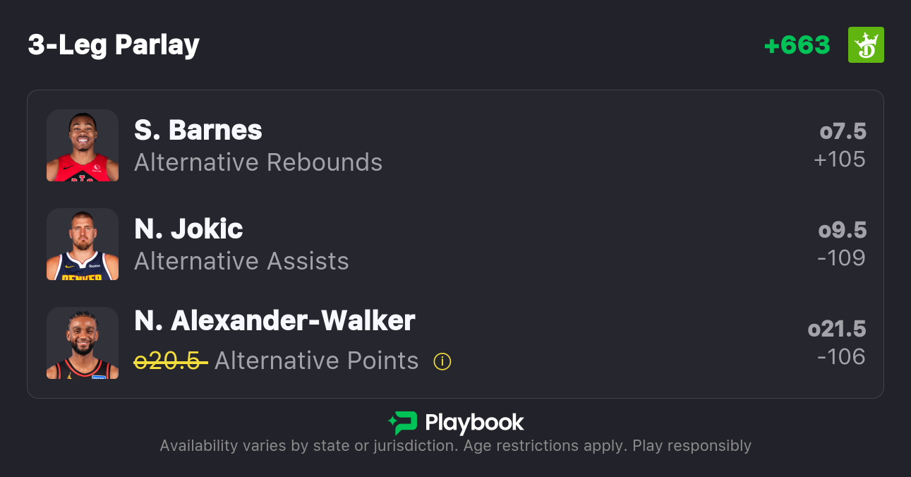 Specific betting recommendations come from the sportsbook offering preferred odds as of writing. Always shop for the best price using our NBA Odds page, which automatically surfaces the best lines for every game. | |