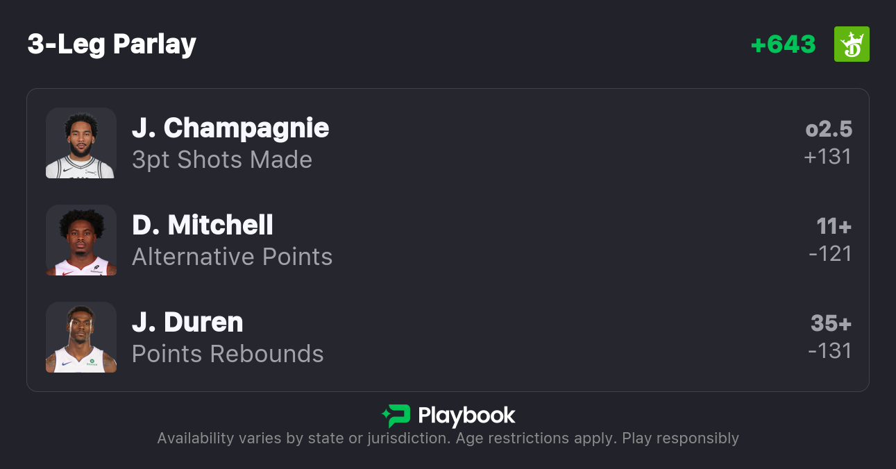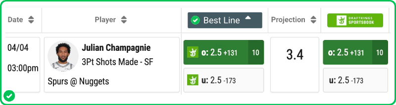 Denver’s defense is designed to stop the primary action, but it consistently bleeds corner threes to high-percentage secondary options. I’m betting they leave him open, and I'm betting he makes them pay. Give me three-plus threes for Champagnie at a plus-money price.