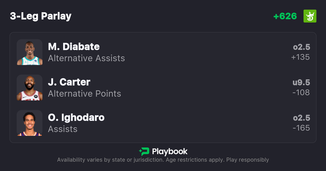 Pick: Moussa Diabate Over 2.5 Assists (+130)