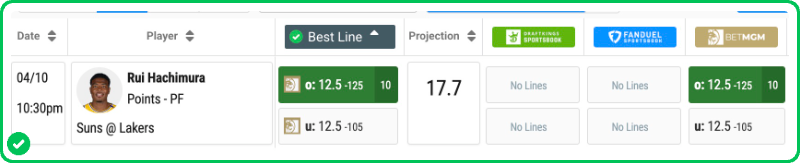 We’re projecting him for a median of 38 minutes, which leads us to a scoring projection of 16.5 points — a significant edge on the current line.