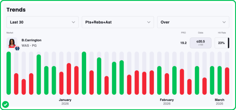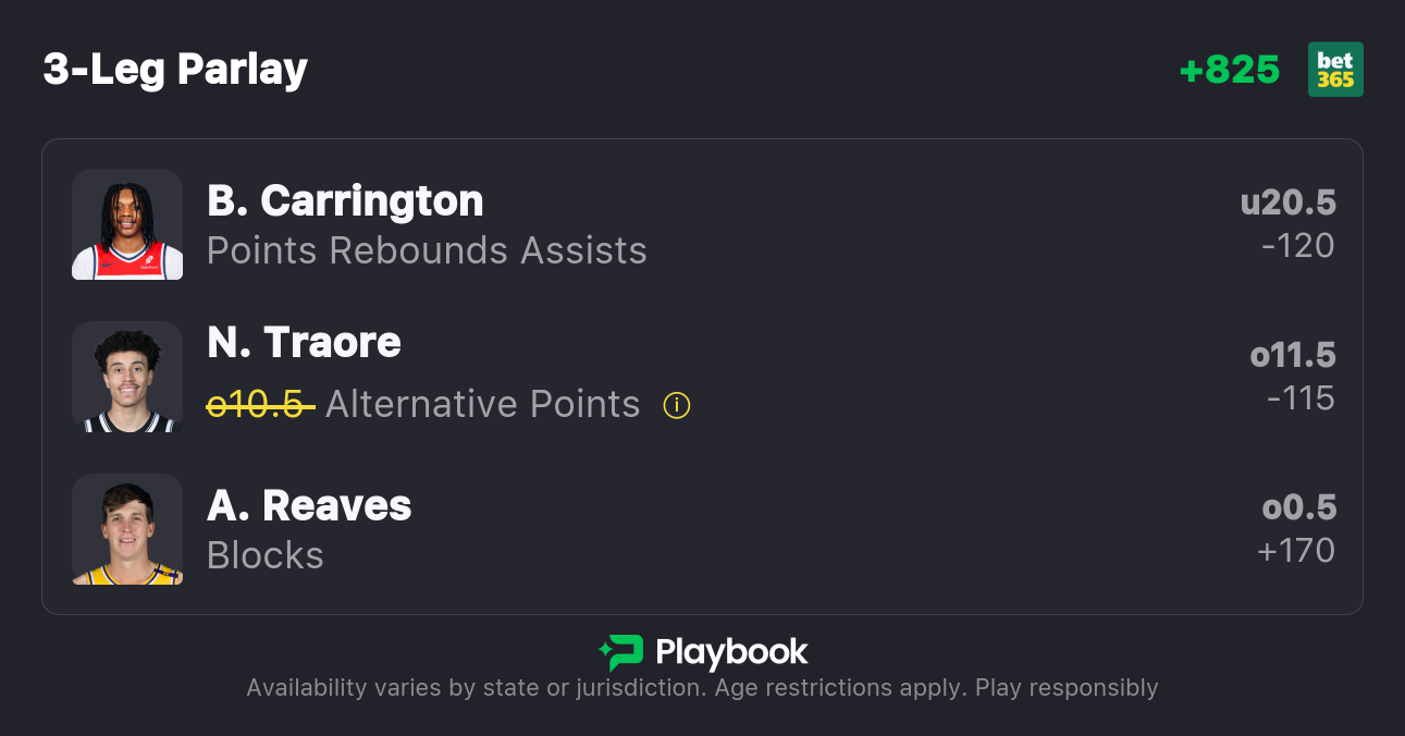 Pick: Bub Carrington Under 20.5 Points, Rebounds, & Assists (-120)