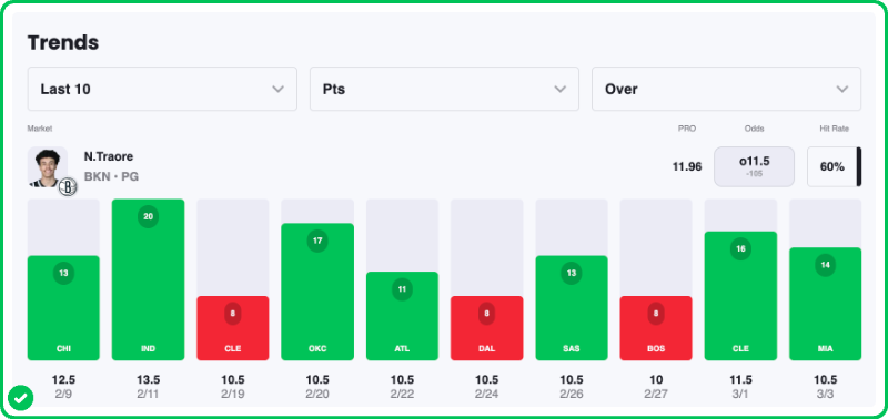 His usage has skyrocketed recently, however, as fellow rookie guard Egor Demin has been out with an injury, putting more offensive responsibility on Traore.