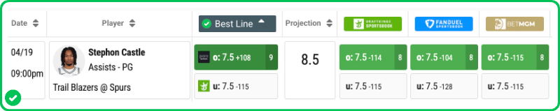 Th Spurs kick off their playoff run against the Trail Blazers on Sunday night, and I’m looking for Stephon Castle to excel in this spot.