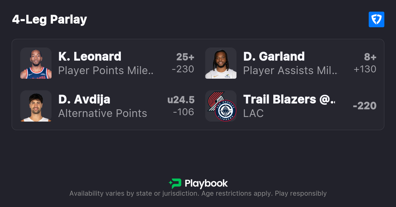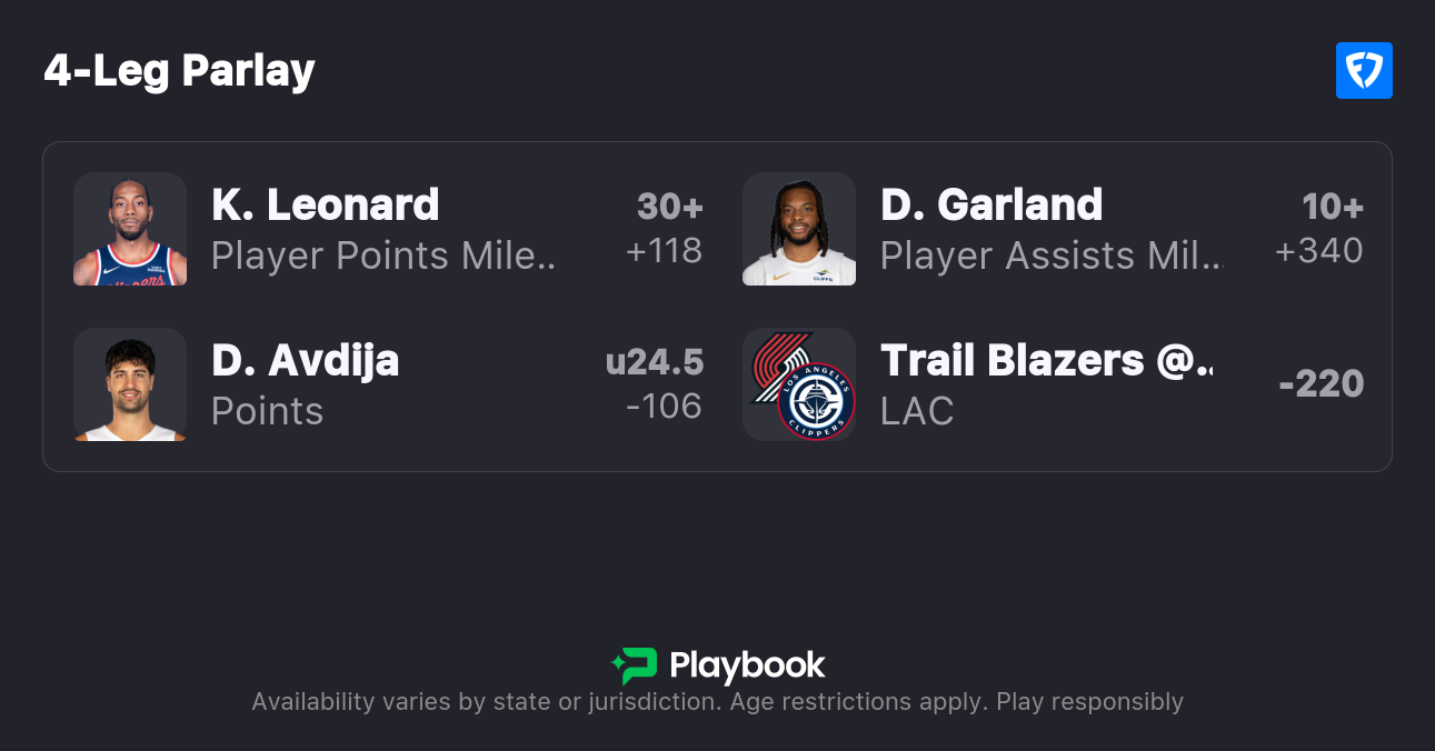 The Correlated SGP: Clippers ML, Leonard & Garland Overs, Avdija Under