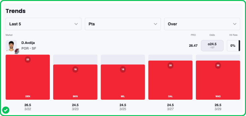 - Deni Avdija Under 24.5 Points
