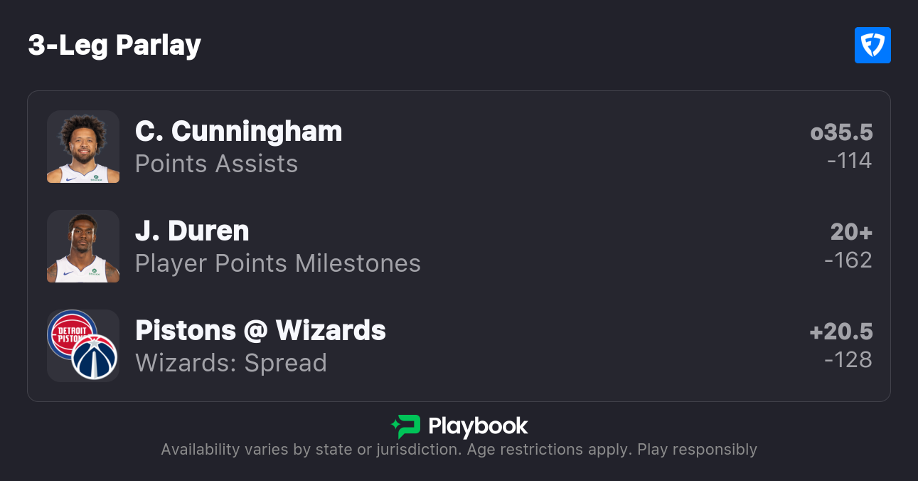 Pistons vs Wizards Parlay Preview