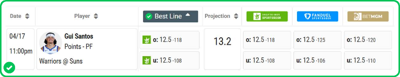 - Gui Santos Over 12.5 Points