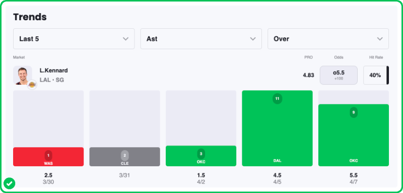 Against the Mavericks, Luke Kennard made bettors very happy as he recorded the first triple-double of his career with 15 points, a career-high 16 rebounds, and 11 assists. Against the Thunder without James, Reaves, and Doncic, he also had nine assists on Tuesday.