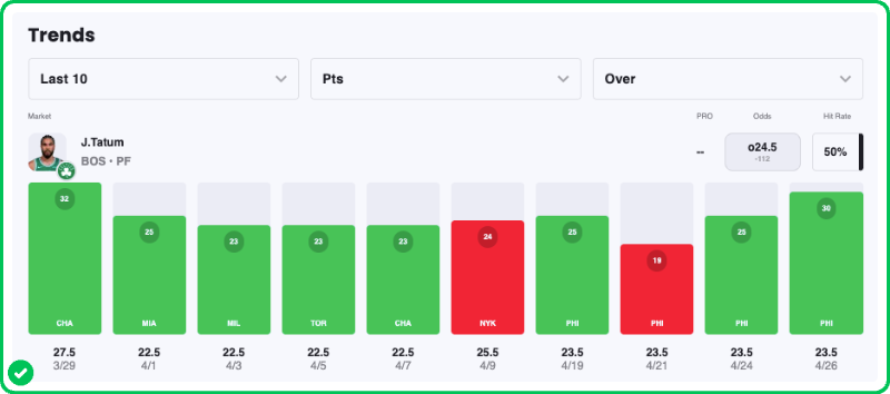 After knocking down just three triples in Games 1 and 2, Tatum has made five 3s in each of the last two games. If he continues to stay hot from the perimeter, he should get to 25 points and more tonight.