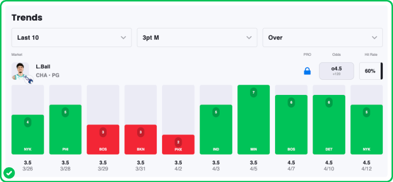 - LaMelo Ball 4+ Three-Pointers Made