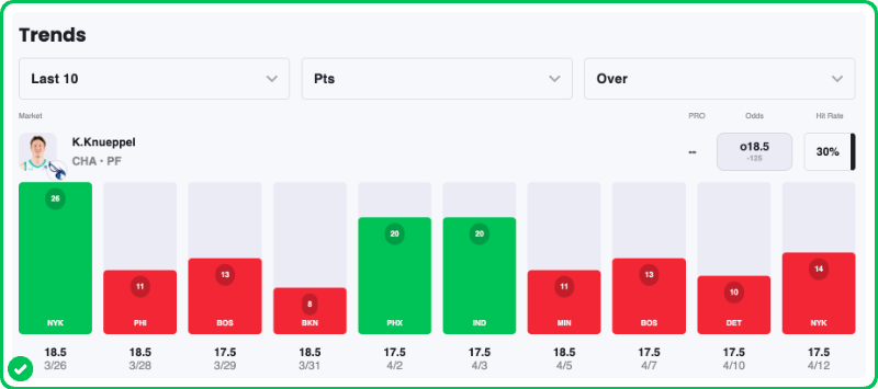- Kon Knueppel Under 18.5 Points