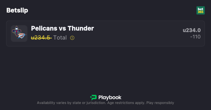 My Pelicans vs Thunder best bet is on the Under at 233.5 total points, with the best price currently available at bet365, but make sure to find the best odds by checking our live NBA odds page.