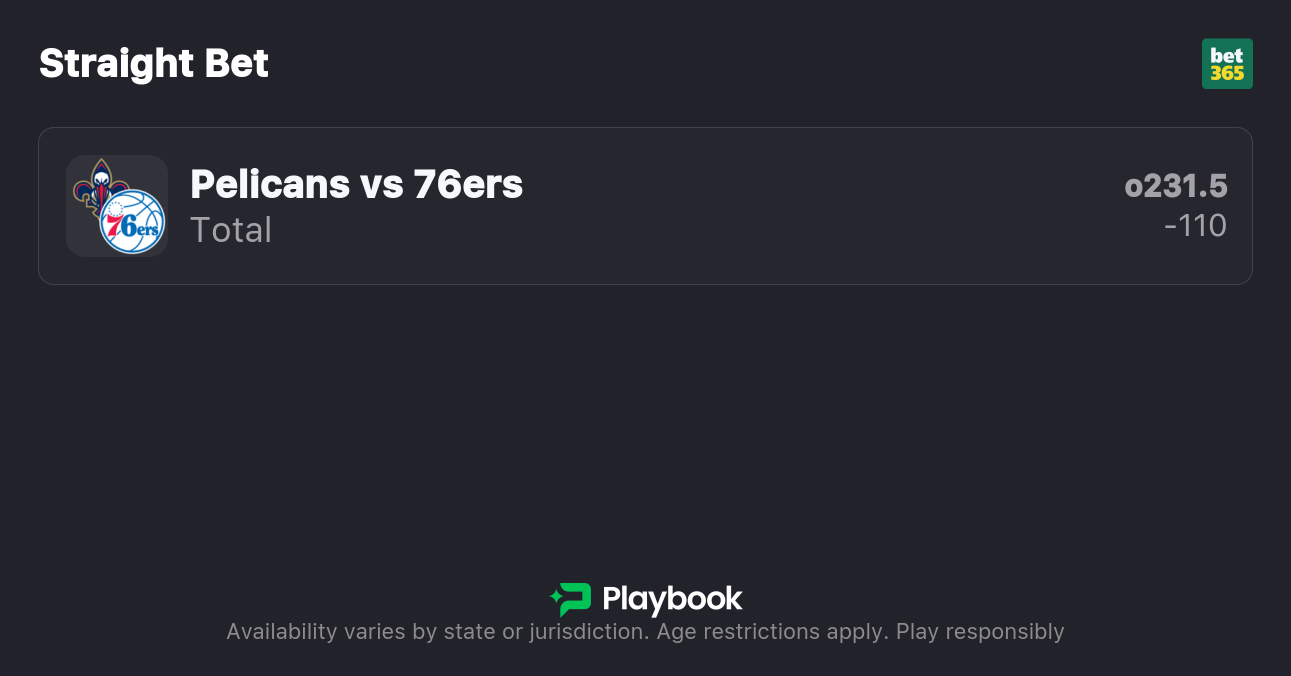- Pelicans vs 76ers pick: Over 231.5 (-110)