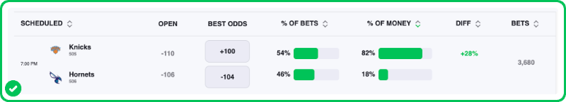 My Hornets vs. Knicks best bet is on Charlotte moneyline at -115. Make sure to find the best odds by checking our live NBA odds page.