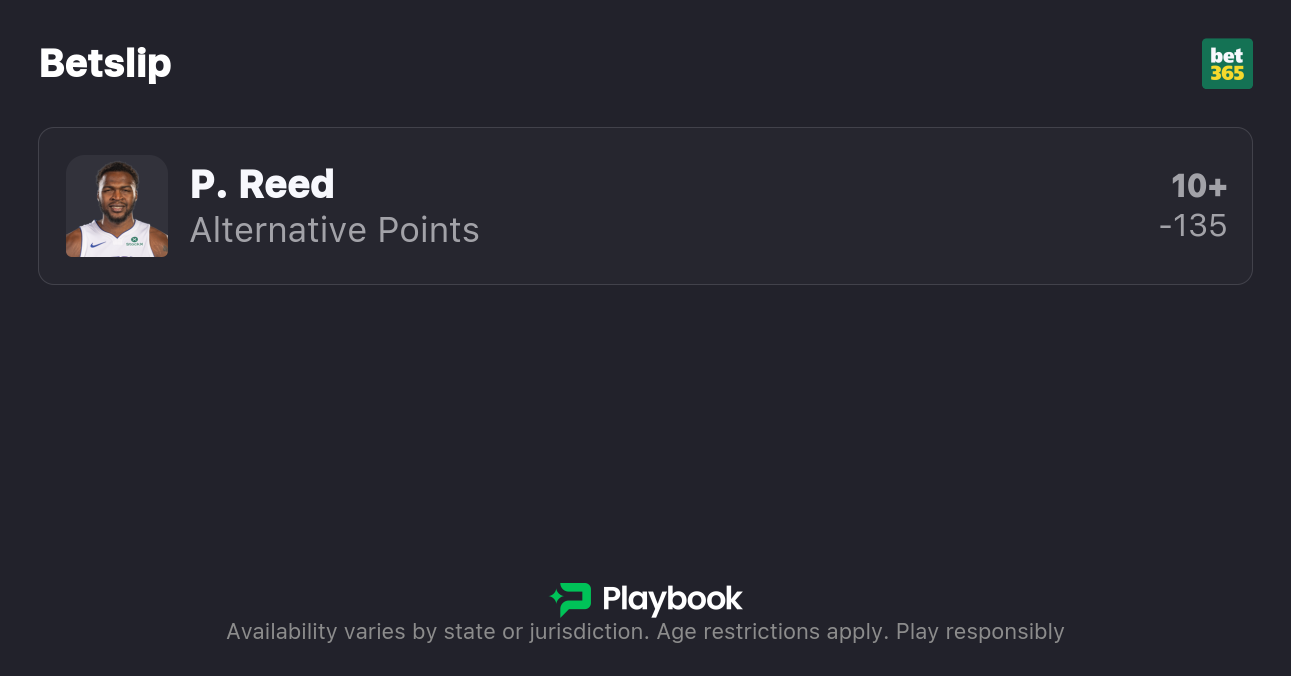 - Paul Reed Over 9.5 Points (-130)