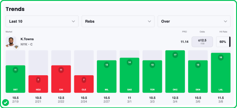 - Knicks vs Clippers pick: Karl-Anthony Towns Over 12.5 Rebounds (-130)