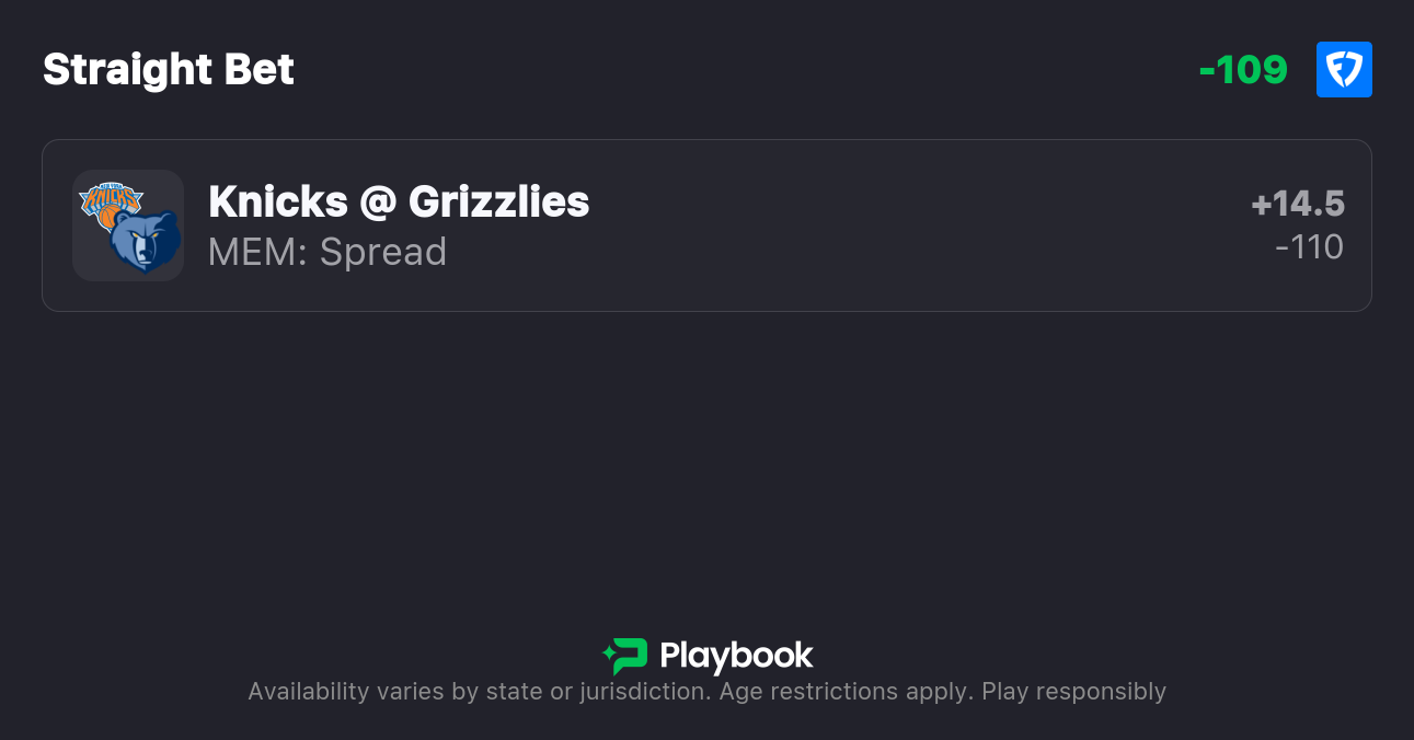 - Knicks vs Grizzlies pick: Grizzlies +14.5 (-110)