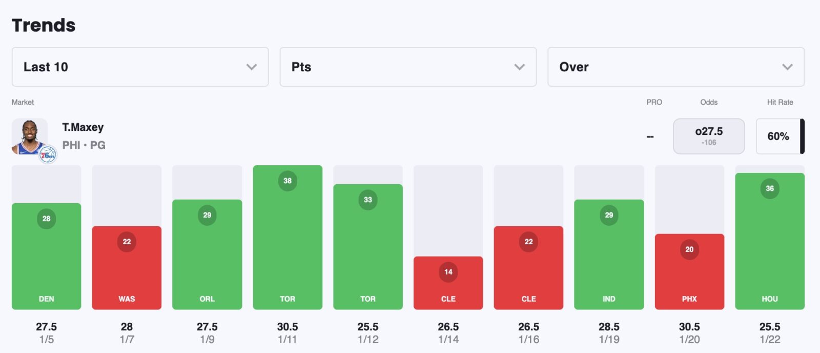 Pick: Tyrese Maxey Over 26.5 Points (-110)