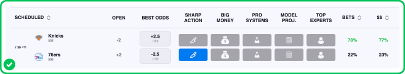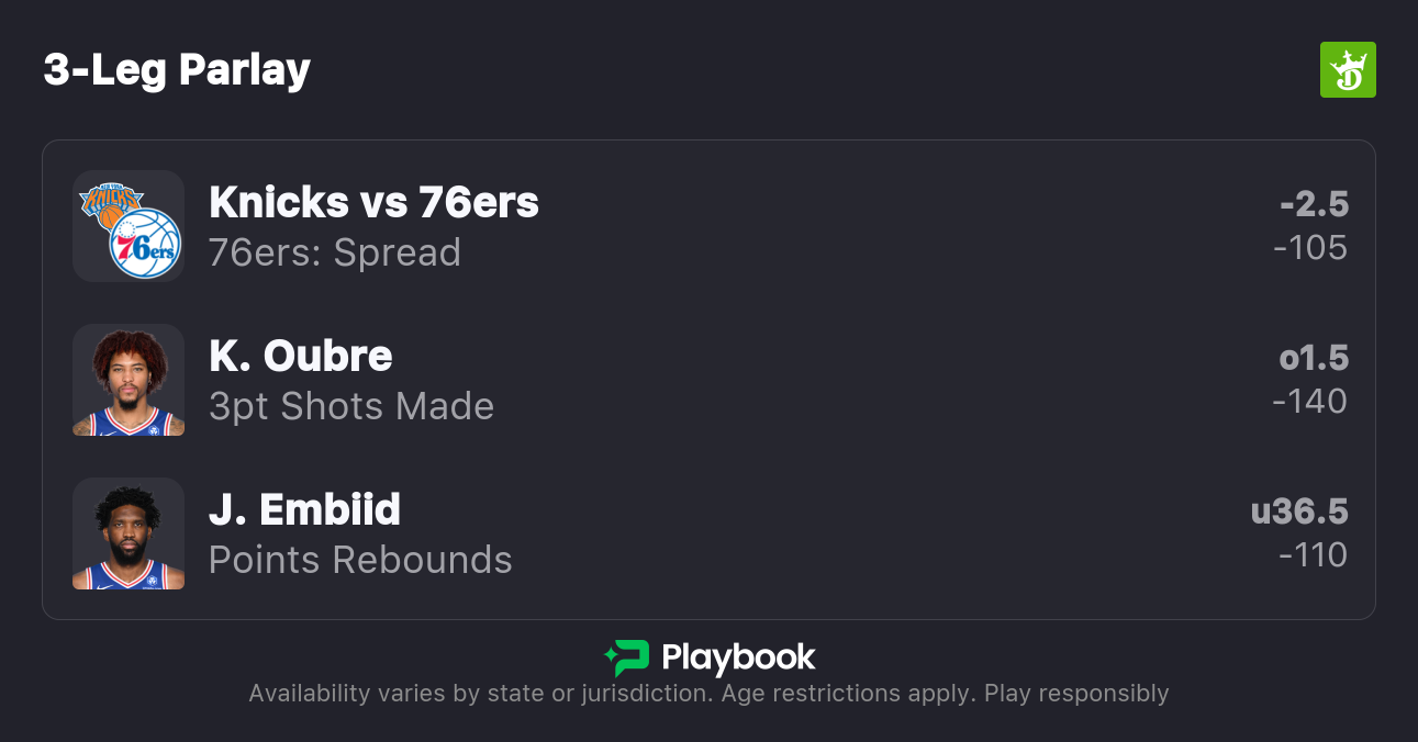 - Knicks vs 76ers pick: 76ers -2 (-110)