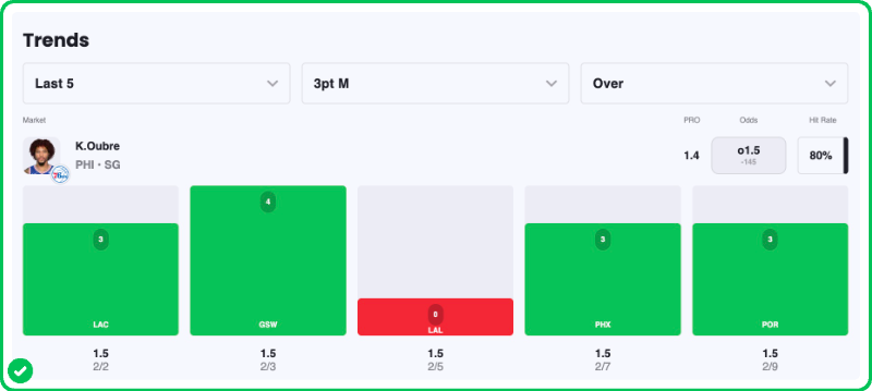 - Kelly Oubre Over 1.5 Three-Pointers Made (-140)