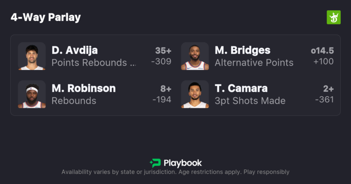 They'll need to pick it up on the defensive end. New York ranks 28th in defensive rating over the past 15 games and has slipped to 19th on the season. Their top perimeter defenders, OG Anunoby and Mikal Bridges, will have a tough assignment slowing down Avdija while also staying out of foul trouble.