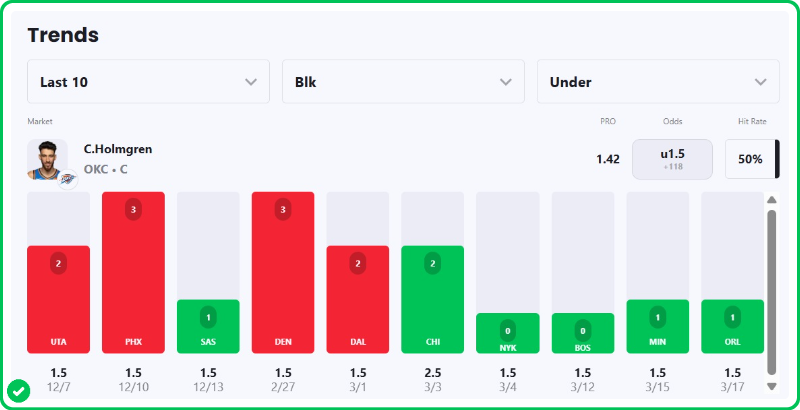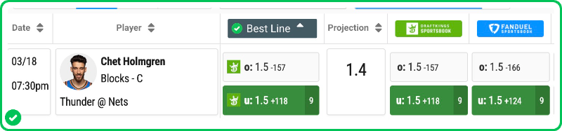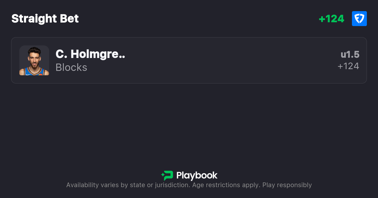 - Thunder vs Nets pick: Chet Holmgren Under 1.5 Blocks (+124)
