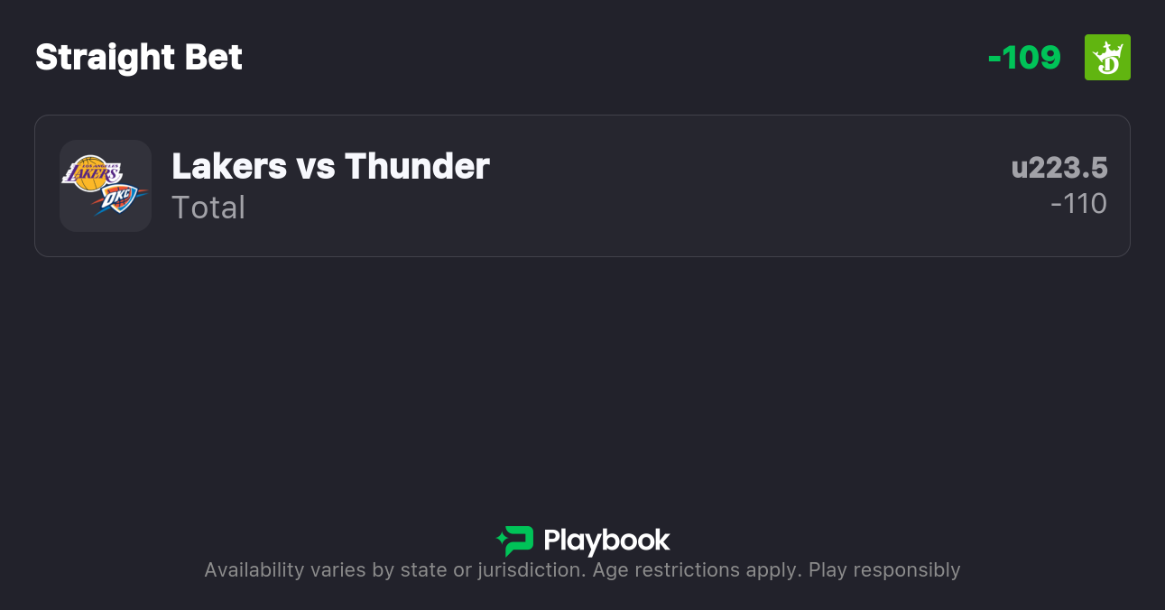 - Thunder vs Lakers pick: Under 223.5 (-110)