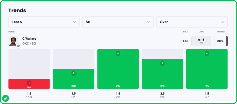 He is averaging 2.1 steals per game this season, and he has gotten two steals or more in six of his last eight games. He also has had two steals in five of his last six games against the Lakers.