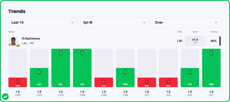 A pair of assists may go to Rui Hachimura, who is averaging 12 points over his last 10 games.