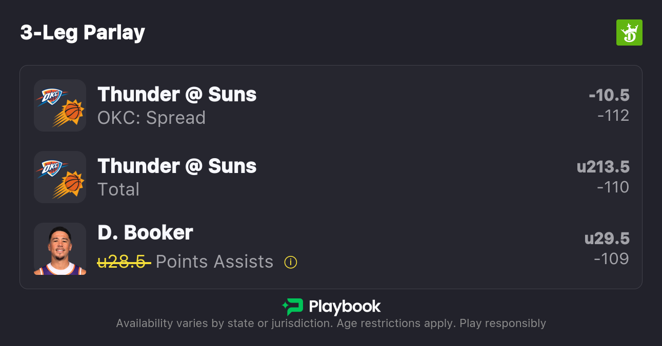 - Thunder vs Suns pick: Thunder -10.5 (-112)