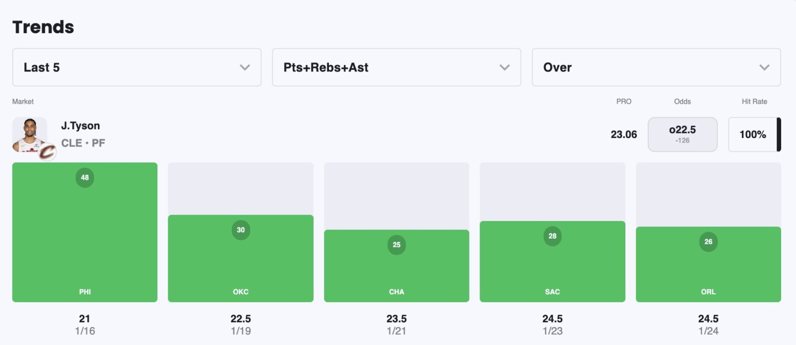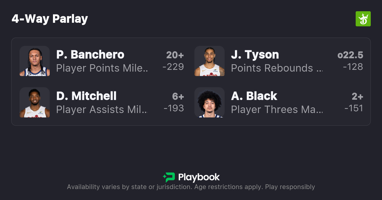 - Magic vs Cavaliers pick: Jaylon Tyson Over 22.5 Points, Rebounds, and Assists (-115)