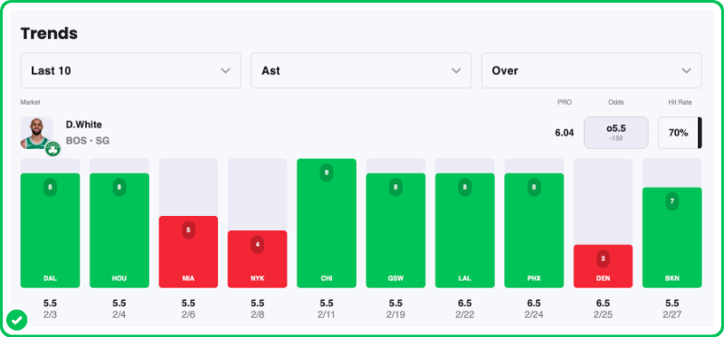 - Derrick White Over 5.5 Assists (-130, BetMGM)