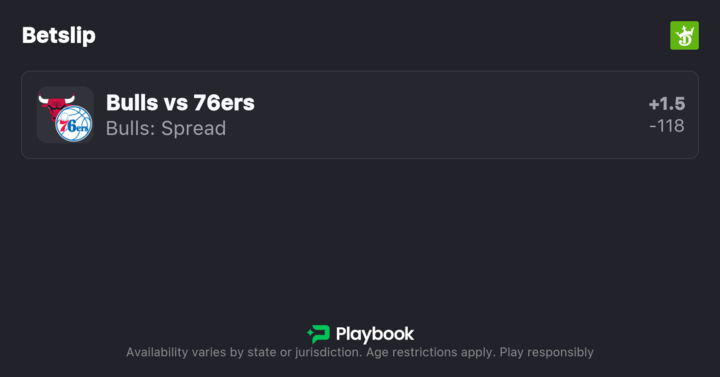 - 76ers vs Bulls pick: Bulls +1 (-115)