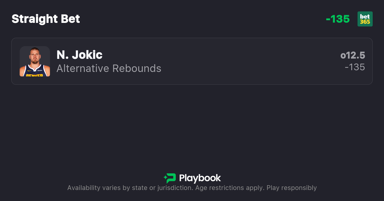 Pick: Nikola Jokic Over 12.5 Rebounds (-130)