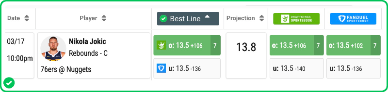 My Nuggets vs. 76ers best bet is on Nikola Jokic to record over 12.5 rebounds. Make sure to find the best odds by checking our live NBA odds page.