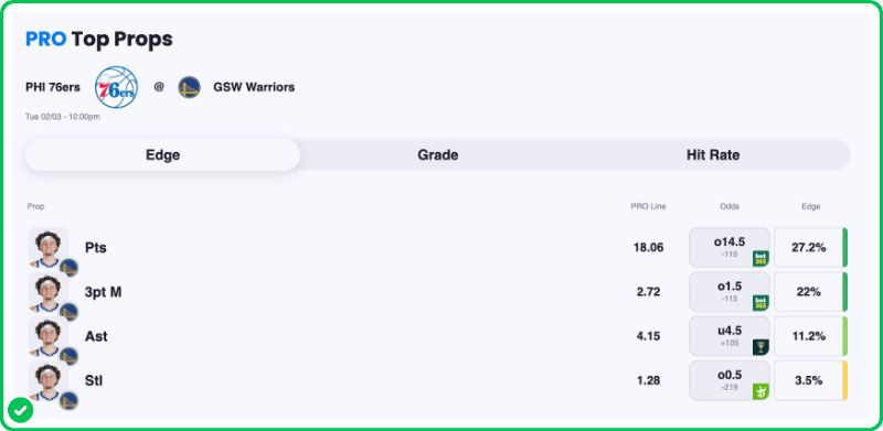 - 76ers vs Warriors pick: Warriors Moneyline / Brandin Podziemski 15+ Points (+156)