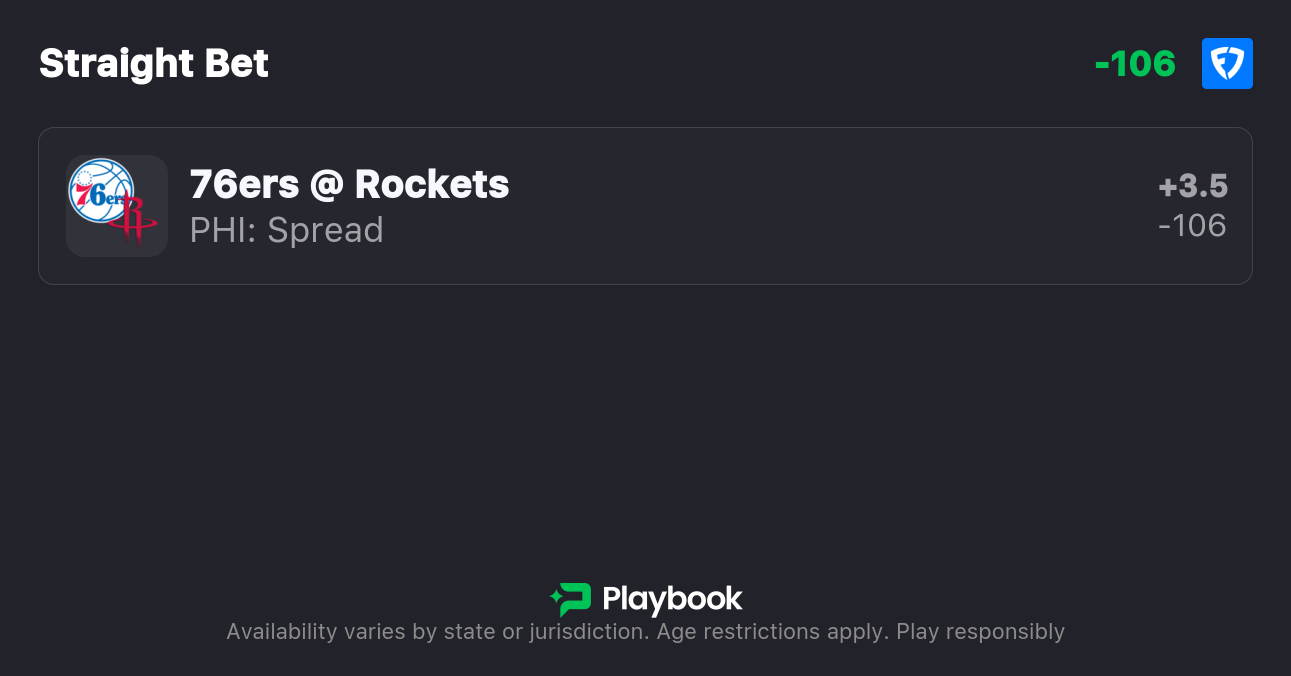 - 76ers vs Rockets pick: 76ers +3.5 (-106)