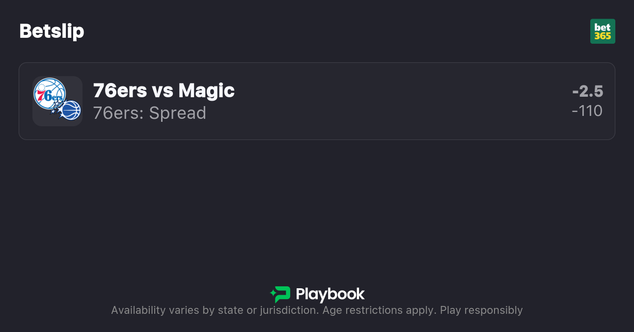My Magic vs. 76ers best bet is on Philadelphia to cover the spread, with the best price currently available at bet365. Make sure to find the best odds by checking our live NBA odds page.
