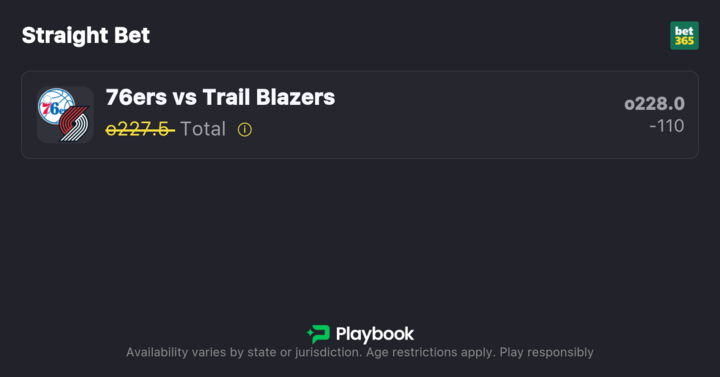 - 76ers vs Trail Blazers pick: Over 228 (-110)
