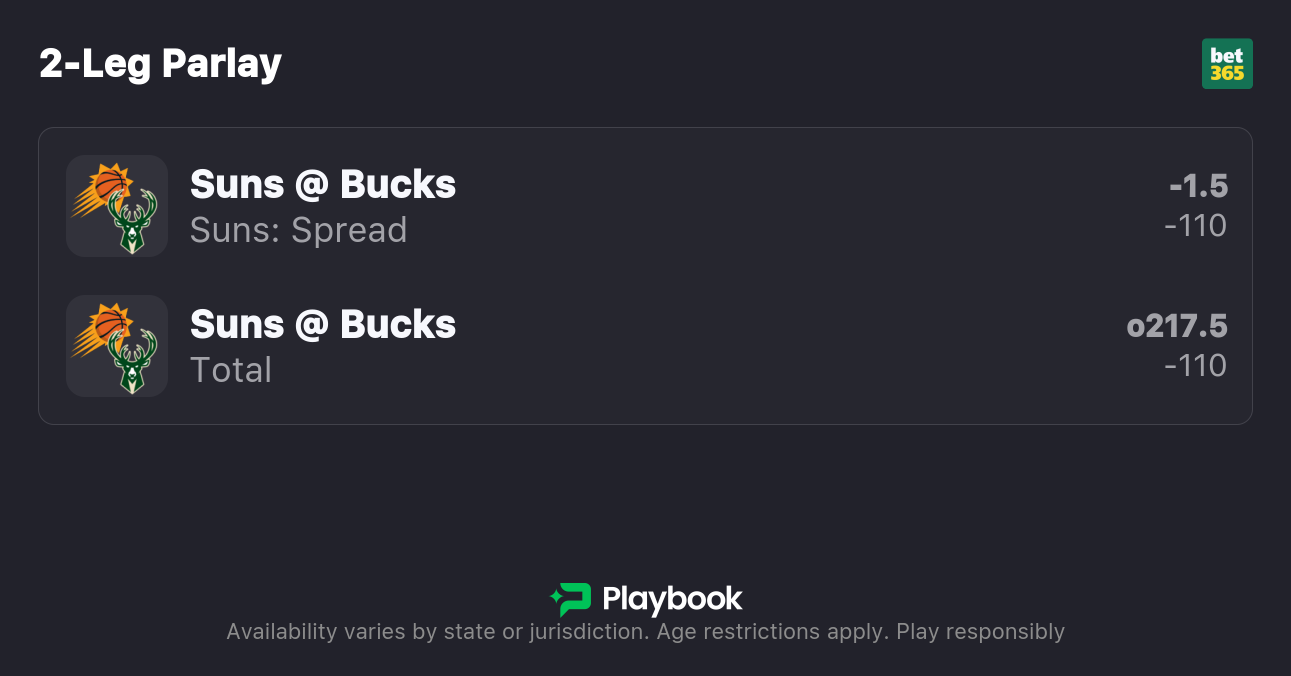 - Suns vs Bucks picks: Suns -1.5 (-110), Over 217.5 (-110)