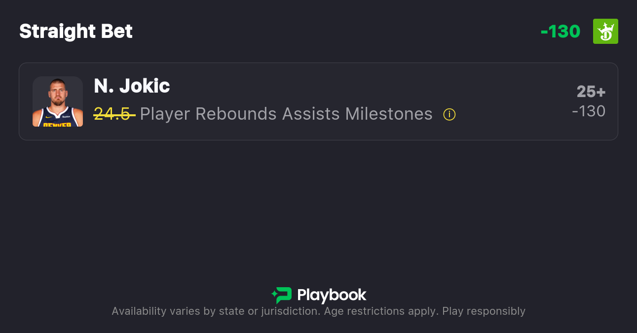 Pick: Nikola Jokic 25+ Rebounds & Assists (+100)