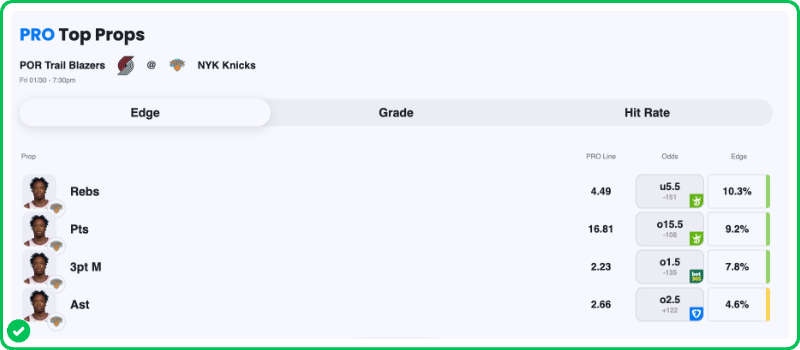 Our Action Pro Report projects Anunoby for 16.8 points tonight, making this a solid secondary leg to pair with the Knicks moneyline.
