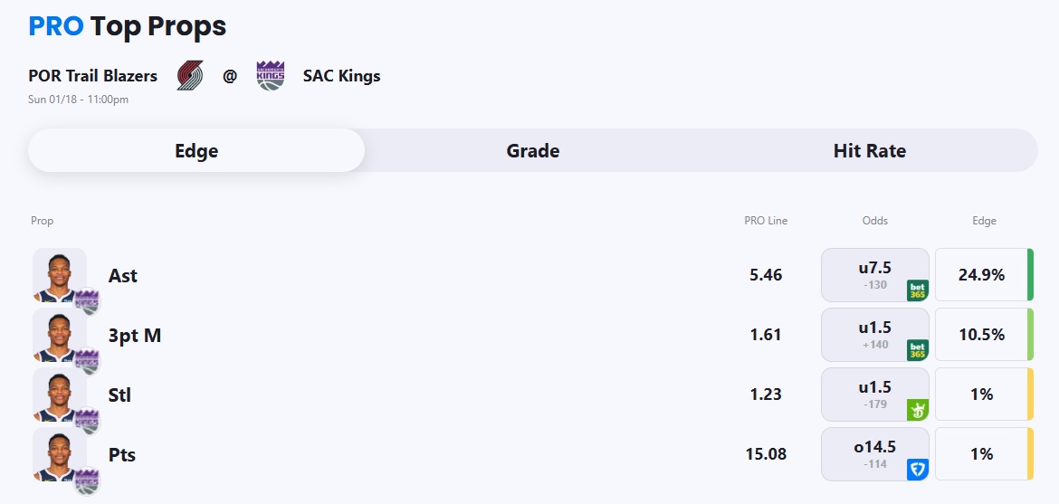 My Kings vs Trail Blazers best bet is on Russell Westbrook under 7.5 assists, with the best price currently available at bet365. Make sure to find the best odds by checking our live NBA odds page.