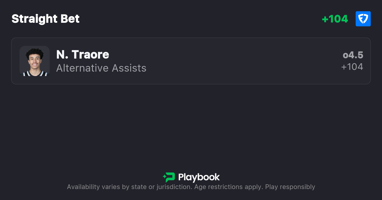 Pick: Nolan Traore Over 4.5 Assists (+104)
