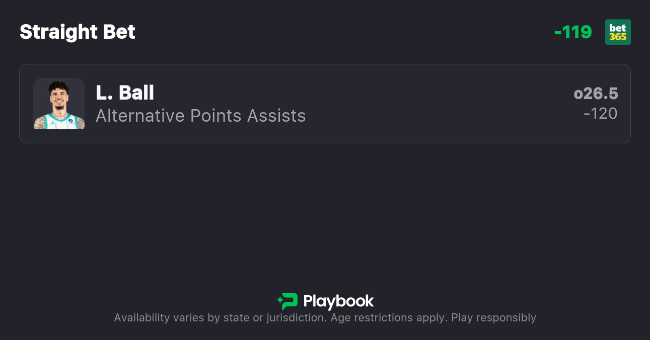 Pick: LaMelo Ball Over 26.5 Points & Assists (-120)