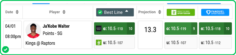 Our Raptors vs Kings best bet is on Ja'Kobe Walter to score over 10.5 points. Make sure to find the best odds by checking our live NBA odds page.